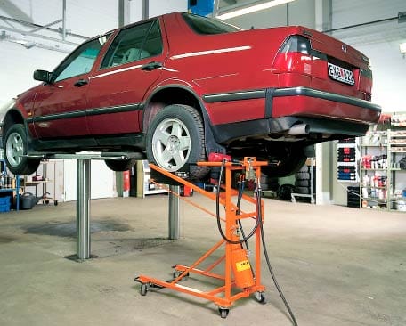 NENAB lufthydraulisk hjullyft H-630 avsedd för att lyfta däck och hjul vid hjulskifte som komplement till saxlyftar samt en- och tvåpelarlyftar.